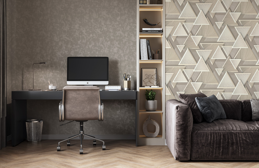Прикоснуться к миру высокой моды, где рождаются идеальные образы, а сама красота становится богемным искусством позволят обои Deep Fashion. Стильный геометрический мотив с 3D-эффектом и разнонаправленным рельефом создает объем и глубину пространства. Треугольная гармония задает упорядоченный ритм, а свободное расположение элементов визуально расширяет интерьер.